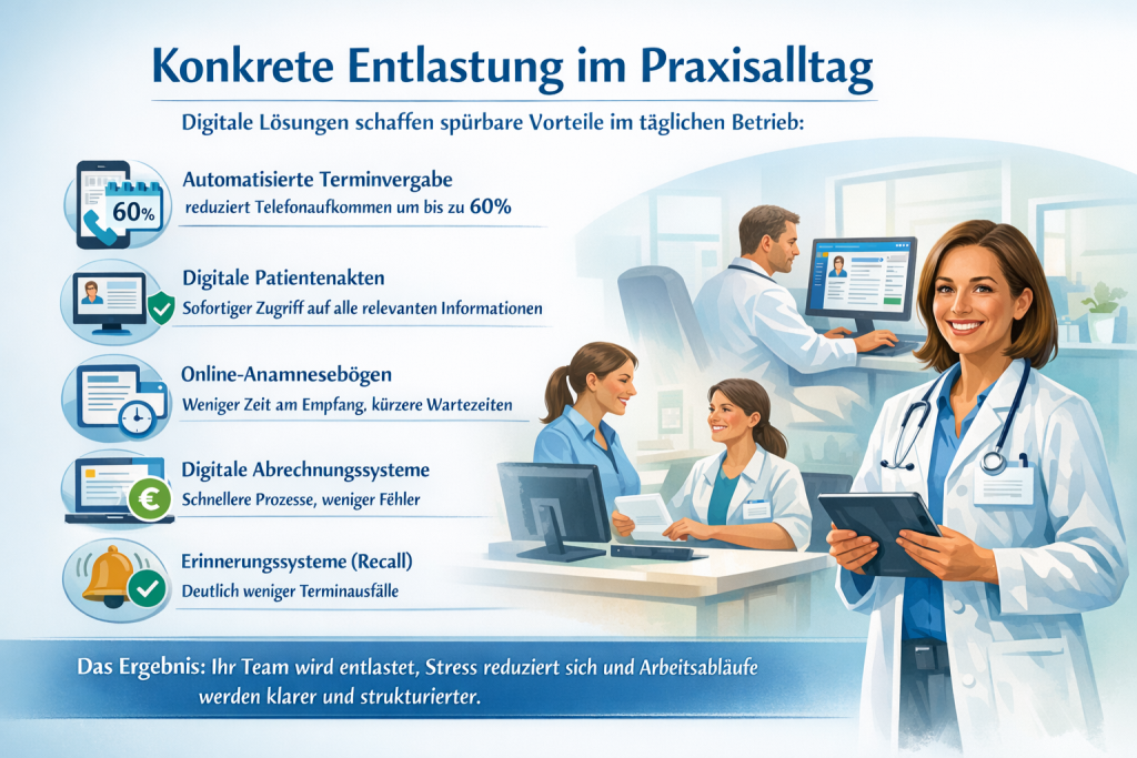 Mit der richtigen Digitalisierungsstrategie sparen Sie nicht nur Zeit und Kosten, sondern sichern auch die Zukunft Ihrer Praxis. Sie arbeiten effizienter, Ihr Team wird entlastet und Ihre Patienten profitieren von einem modernen und komfortablen Service.
