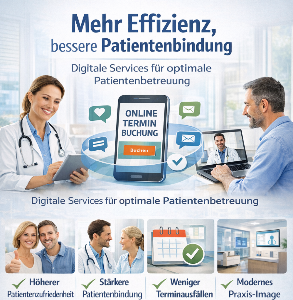Neben der internen Entlastung verbessert die Digitalisierung auch die Außenwirkung Ihrer Praxis. Patienten erwarten heute einen modernen Service – von der Online-Terminbuchung bis zur digitalen Kommunikation.